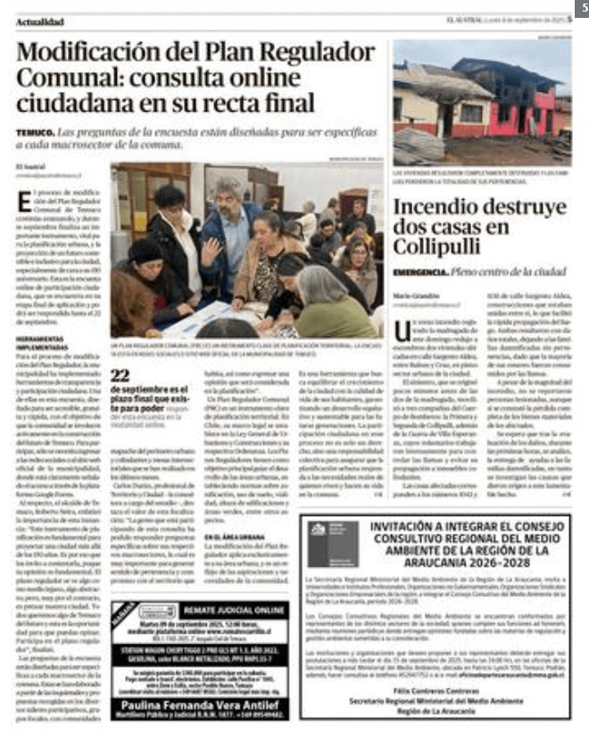 La primera semana de septiembre estuvimos en diversos medios de prensa conversando sobre el proceso del Plan Regulador e invitando a responder a la encuesta de cierre de diagnóstico.